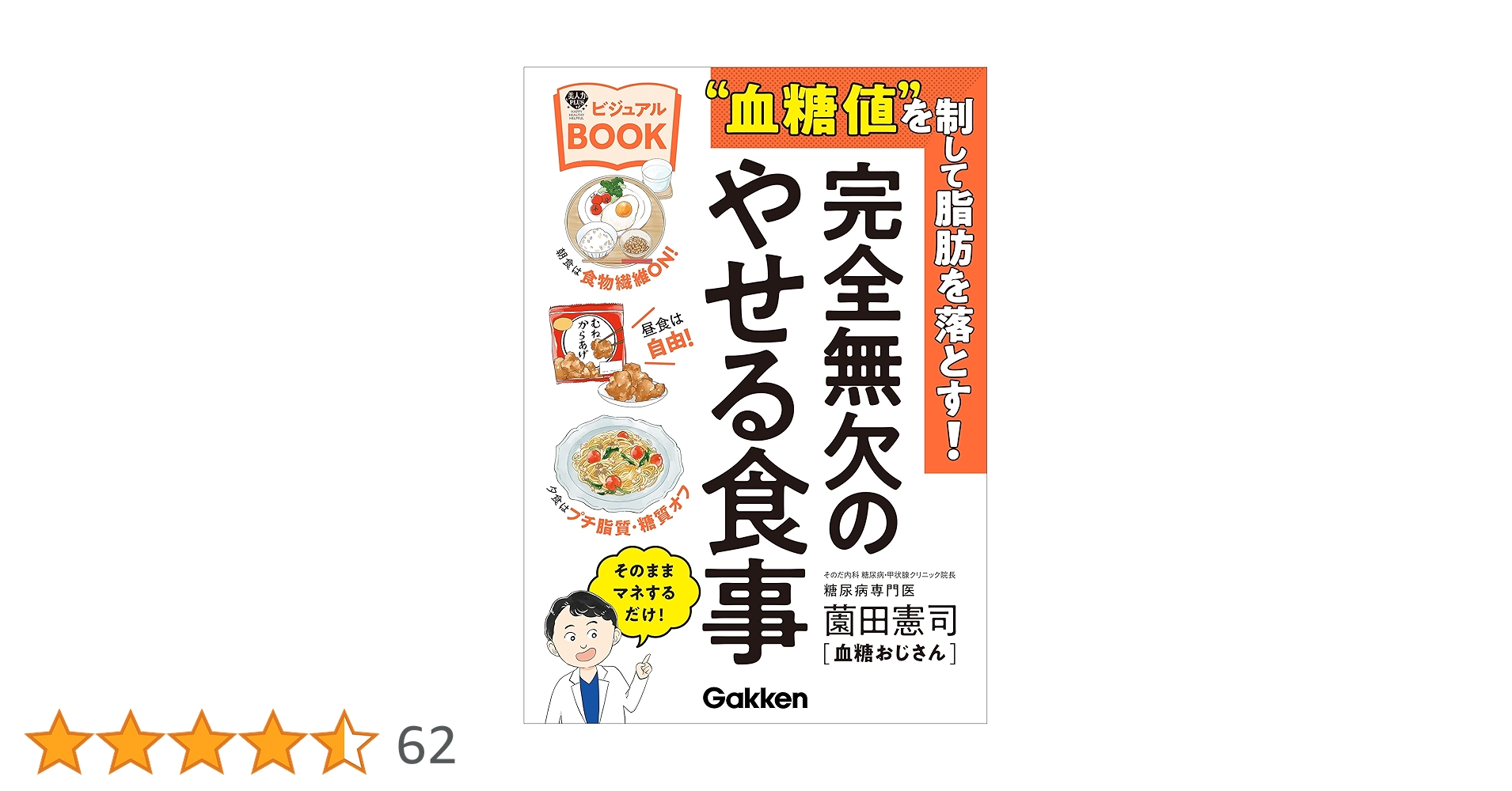 “血糖値”を制して脂肪を落とす!完全無欠のやせる食事ビジュアル(薗田 憲司)血糖値スパイクの制御を中心に、炭水化物・甘いもののタイミングと質をコントロール比較的実践しやすく、外食・惣菜利用の提案などストレス低めの工夫あり血糖値の管理・健康上の病気予防(糖尿病など)に強い焦点あり献立例やビジュアルが豊かで「マネしやすさ」が強み地域/価格/食材入手性などによる制限あり
