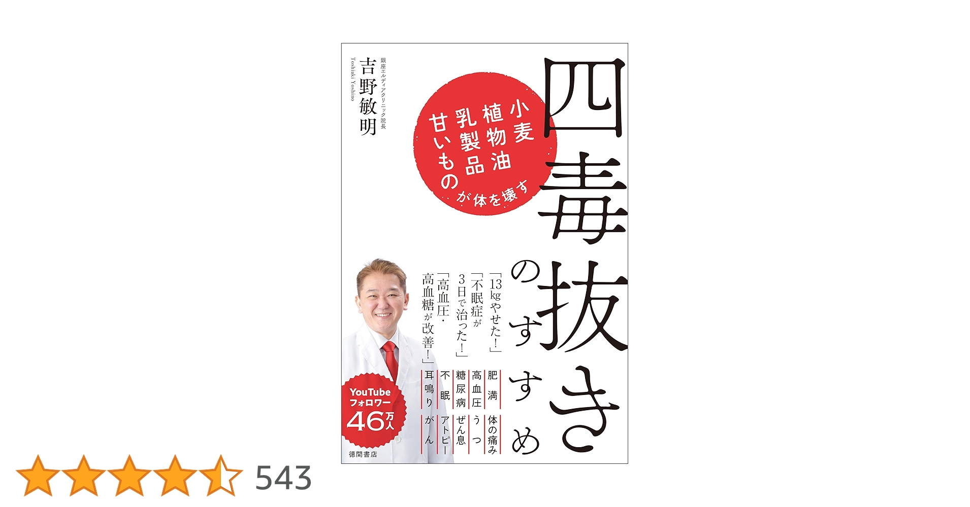 「四毒抜きのすすめ」は、著者である吉野敏明先生が、小麦・植物油・乳製品・甘いもの、これら4つを「四毒」と名付け、これらを減らす(あるいは排除する)ことで、人間の体調不良や慢性疾患を予防・改善しようという提案をする一冊です。歯科医師でありながら口腔のみならず全身の健康への関心をもち、「食との関わり」が多くの病気・体調不良の根本原因となっているとの観点から執筆されています。