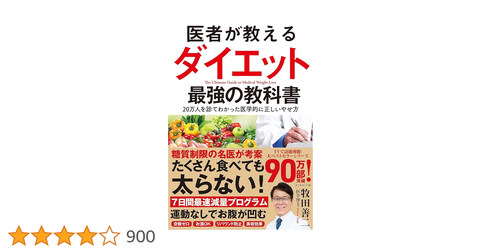 医者が教えるダイエット 最強の教科書(牧田 善二)比較的糖質制限側の立場。「どのくらい糖質を抑えるか」「隠れ糖質」の管理など重点スタートは厳しめの要素あり。「運動なし・空腹を我慢しない」を掲げてはいる糖質依存や代謝・インスリン・医学的証拠の観点から健康リスクを説明7日間プログラム、食事の順番・量・間食の具体例など豊富個人差の指摘あり。ただし実践負荷は人によってかなり変わる