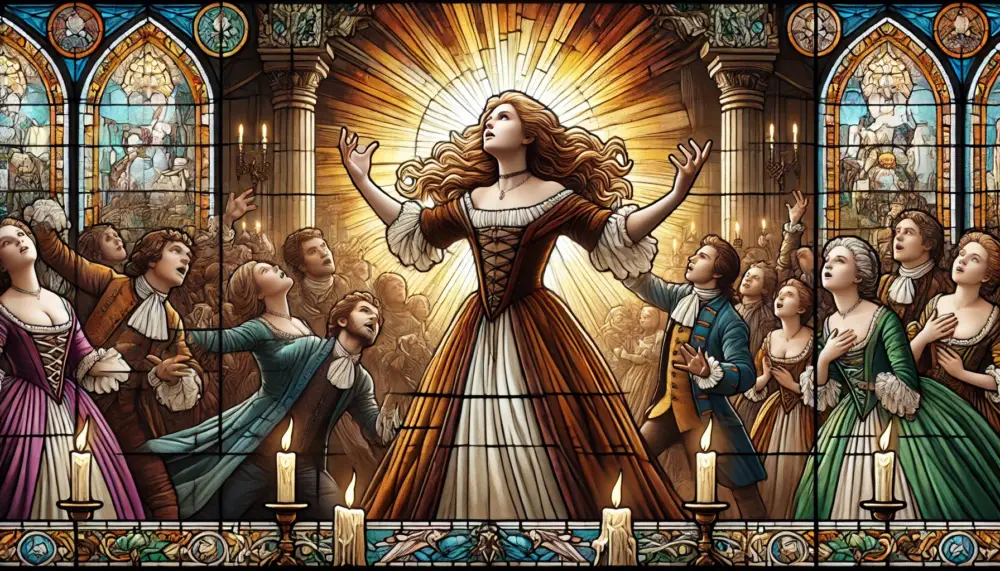 主人公アン・リーは、18世紀のマンチェスターで生きる無名の若い女性として描かれます。労働に明け暮れる生活の中で、彼女は「この世界には、まだ見えていない別の調和がある」という直感にとらわれていきます。これは派手な啓示ではなく、日々の痛みや迷いの中からじわじわ育つ想い。その感覚が、やがて信仰・歌・身体の動きとして外にあふれ出し、周囲の人々を引き寄せていきます。