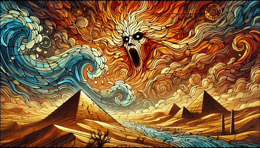 - 砂嵐の顔: イムホテップの怒りと、自然の脅威が一体化した象徴的カット。