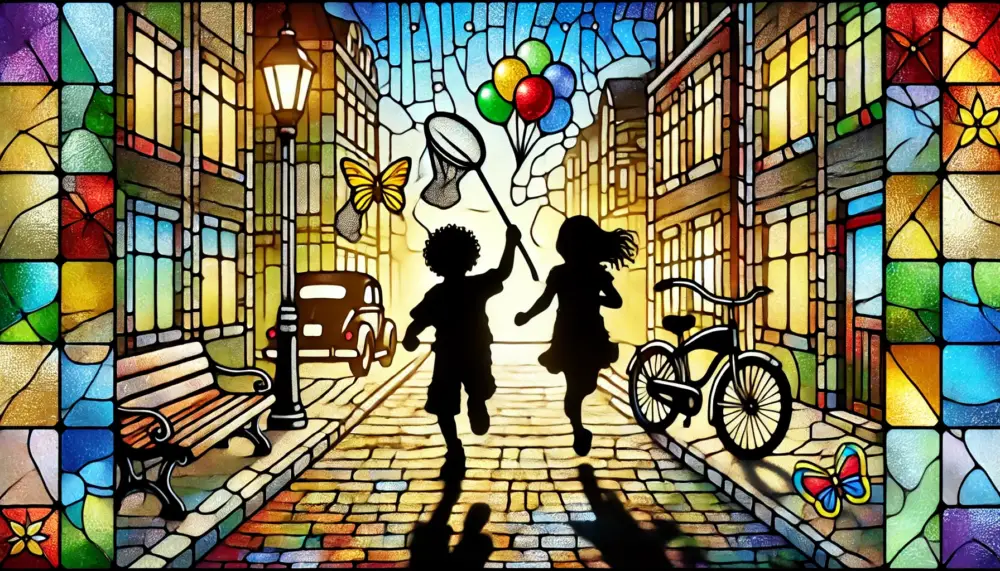 物語の舞台は、どこかヨーロッパの街角を思わせる、石畳とアパートが並ぶ小さな町。色とりどりの風船やネオン、