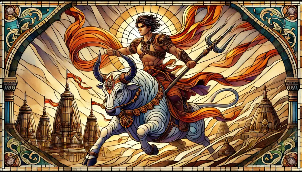 映画で牛に乗っているということは、 ルドラが「守護」と「力」の象徴を背負っているというサインでもあるのです。